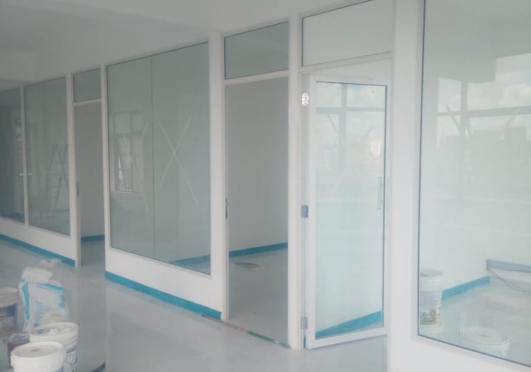 Create bright, modern, and professional office spaces with our frameless glass partition systems. Designed for maximum light flow and a clean corporate finish, our toughened glass walls enhance openness while maintaining privacy and sound control.